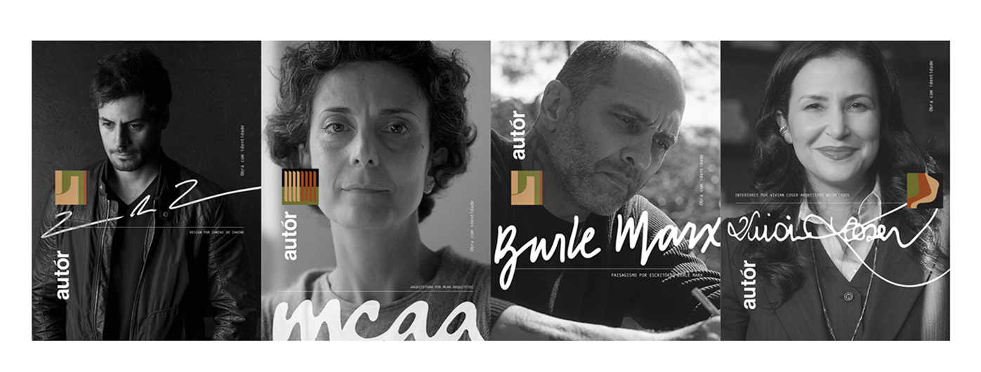 que celebra o poder da autoralidade, com peças dedicadas a cada criador, representados por sua assinatura e ícones proprietários.